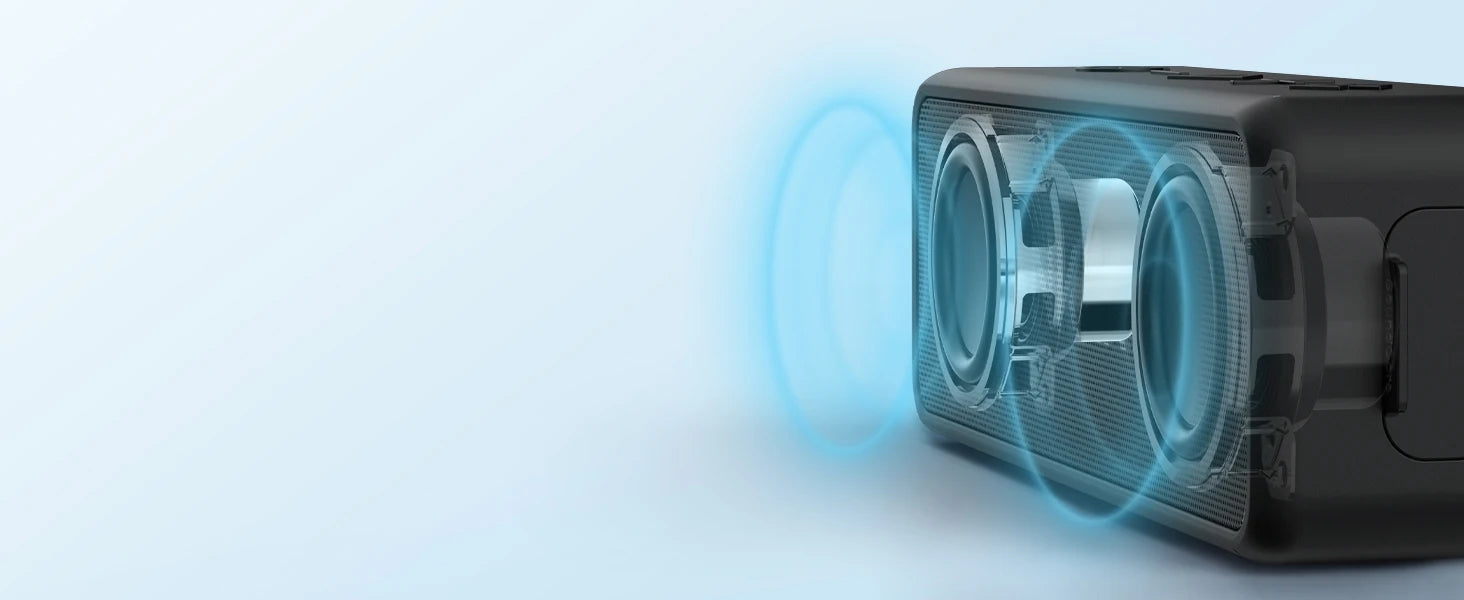 - Dual drivers with extra bass mode for powerful, room-filling sound